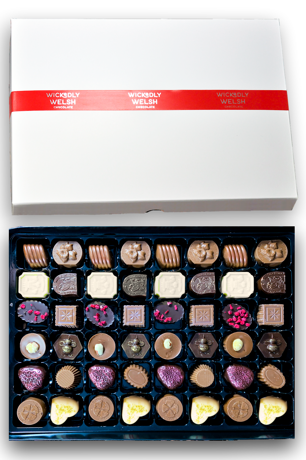 Step into a world of unparalleled indulgence with our 48-piece chocolate collection. exclusively crafted by Wickedly Welsh. the award-winning artisanal chocolatier from the heart of Wales. This isn’t just a box of chocolates; it’s a curated experience that takes you on a flavour journey like no other.