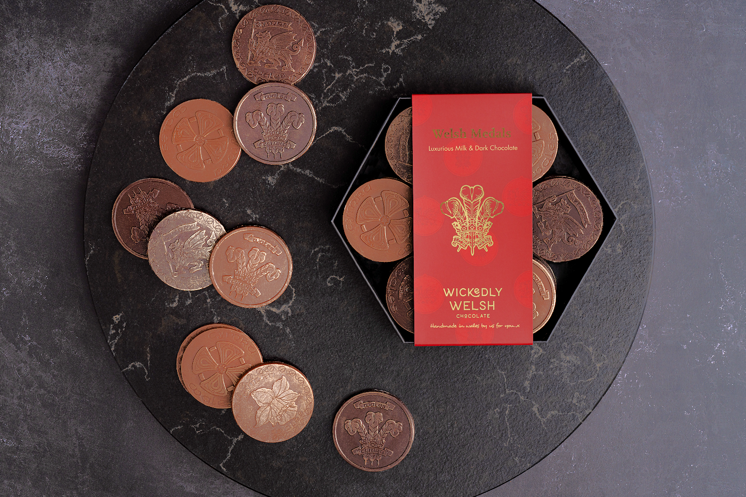 Our delicious box of Welsh Chocolate Medals are a perfect blend of patriotism and indulgence. Each medal is a tribute to iconic Welsh symbols. making it a gift that’s close to the heart of every Welsh person.